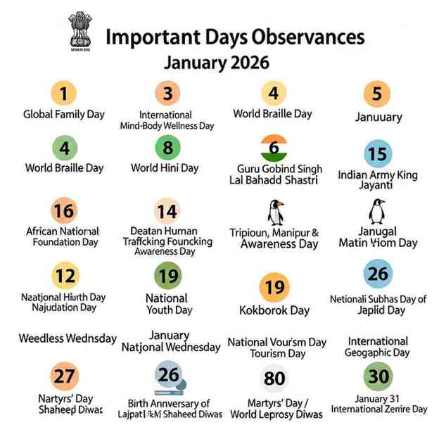 January marks the beginning of a new year and sets the tone for reflection, awareness, celebration, and renewal. Across the globe, many important national and international days are observed during this month to honor history, culture, education, social causes, and the contributions of great personalities. For students preparing for competitive exams, general awareness readers, and educators, knowing these days is extremely useful.
