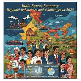 In the future free market India (2025) the export economy would be highly polarized. The US 25 percentage tariff on Indian imports, the recent one, reflected global trade prejudice, as well as inner country contrasting disparities. Some of the states control the export map but others are side actors and this brings about the issue on resilience and balanced growth.