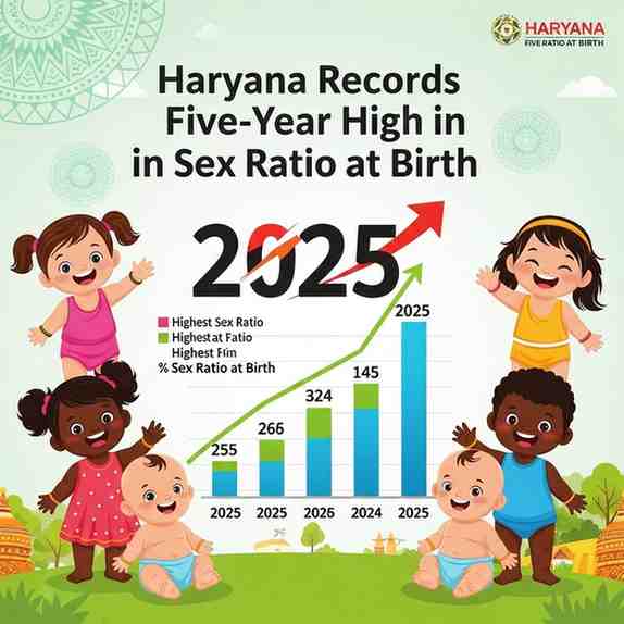 Haryana has recorded a significant improvement in its Sex Ratio at Birth (SRB), which rose to 923 in 2025—the highest level in the past five years. The figure reflects a 13-point increase from 910 in 2024, indicating the impact of sustained administrative vigilance and strict enforcement measures aimed at curbing gender-biased practices. According to state officials, the improvement marks a reversal of last year’s dip and signals a steady recovery trend.