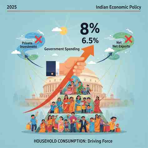 As economies undergo global transitions, Indian economic policy in 2025 will focus more on developing the household consumption as its driving force of its multiplex economic growth. Although the government is experiencing strong, though headwinds in private investment and net exports, the net exports cannot hold the high economic momentum unless the government spending holds the course. The policymakers are seeking to increase the rate of growth in India which currently stands at approximately 6.5 percent to about 8 percent per annum or more.