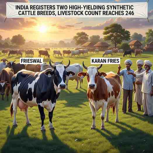 India has taken another step towards strengthening its dairy and livestock sector with the formal registration of two high-yielding synthetic cattle breeds , each capable of producing over 3,000 kg of milk in a standard 10-month lactation period . With these additions, the total number of officially registered livestock and poultry breeds in the country has increased to 246 , highlighting India’s dual focus on boosting productivity while safeguarding indigenous genetic diversity.