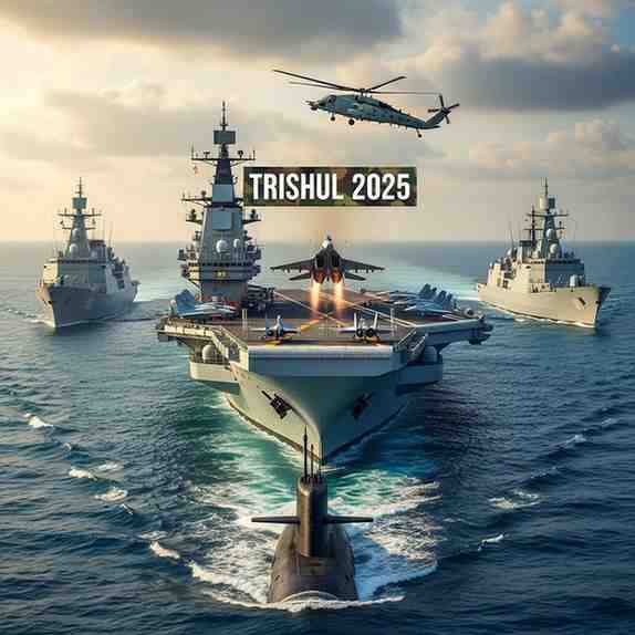 - Coordinated by the Headquarters Western Naval Command , the exercise spans Rajasthan and Gujarat’s creek and desert sectors , extending into maritime zones of the North Arabian Sea . “Trishul” represents one of India’s most comprehensive tri-services drills , combining land, air, and sea elements. The exercise focuses on amphibious missions , carrier-based operations , and joint manoeuvres , reinforcing India’s operational capability in both continental and maritime theatres.