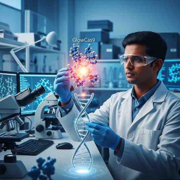 Scientists at the Bose Institute, Kolkata , have developed GlowCas9 , a glowing version of the CRISPR gene-editing protein that allows researchers to observe genome editing in real time inside living cells . This innovation addresses a long-standing limitation in gene-editing research, where molecular activity could only be studied after cells were fixed or destroyed.