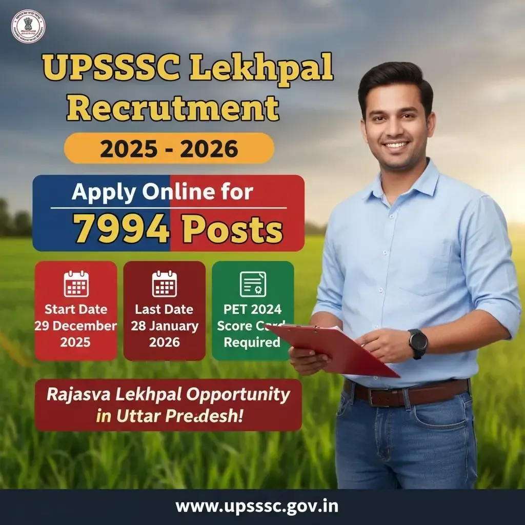 The online application process for UPSSSC Lekhpal Recruitment 2026 will commence on 29 December 2025 through the official UPSSSC portal.
