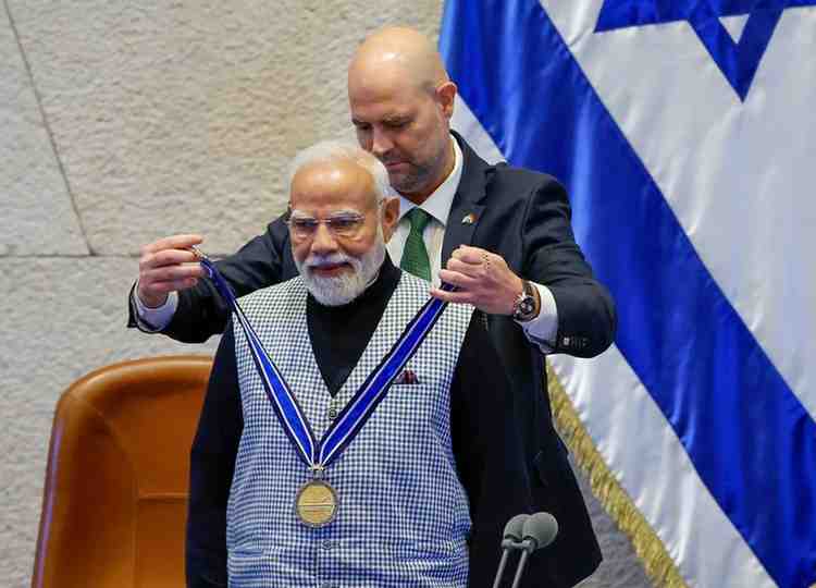Prime Minister Narendra Modi was presented the Speaker of the Knesset Medal, Israel’s highest parliamentary distinction, during his official visit to Jerusalem. The honour was conferred at the Knesset, Israel’s unicameral Parliament, following his address to Israeli lawmakers. The award recognises his personal role in deepening the strategic partnership between India and Israel.
