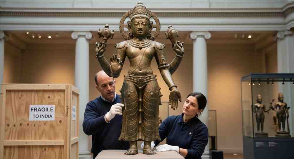 A 16th-century bronze statue of Tirumankai Alvar is set to be returned to India by the Ashmolean Museum. The sculpture, approximately 57.5 centimetres tall, has been part of the museum’s collection since 1967. Recent research established that the statue originally belonged to a temple in Tamil Nadu, prompting the decision to repatriate the artefact. The move reflects growing international efforts to return cultural objects to their countries of origin.
