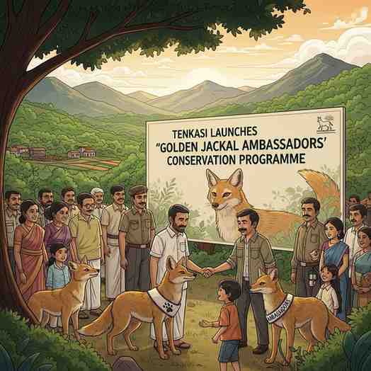Tenkasi district has introduced a new conservation initiative aimed at protecting the dwindling population of golden jackals , a species increasingly threatened by habitat destruction and expanding human settlements. With rampant construction and loss of natural vegetation near residential zones, several small wildlife species are facing sharp declines. To counter this trend, the Forest Department is set to train school and college students as ‘Golden Jackal Ambassadors’ , strengthening community-led conservation.